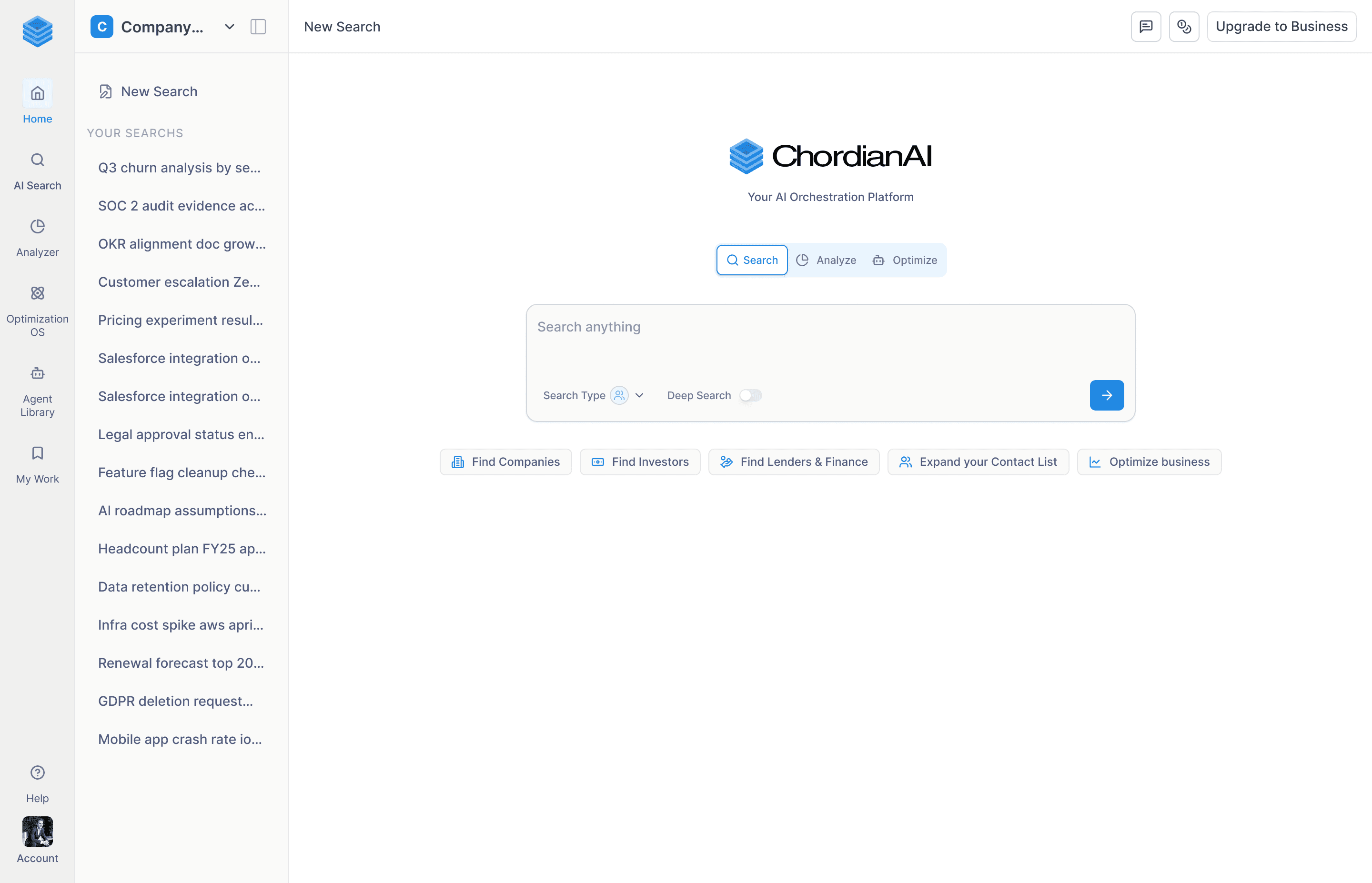 ChordianAI helps teams find information faster and orchestrate agents and advanced compute to solve complex, real-world business problems, cost-effectively.